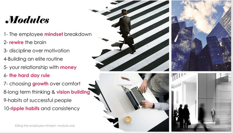 A 10-module masterclass designed to rewire your brain for entrepreneurship, leadership, and absolute ownership of your future. Regain control of your future